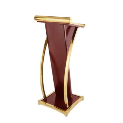 Đặc điểm bục phát biểu hội trường bằng gỗ viền inox vàng