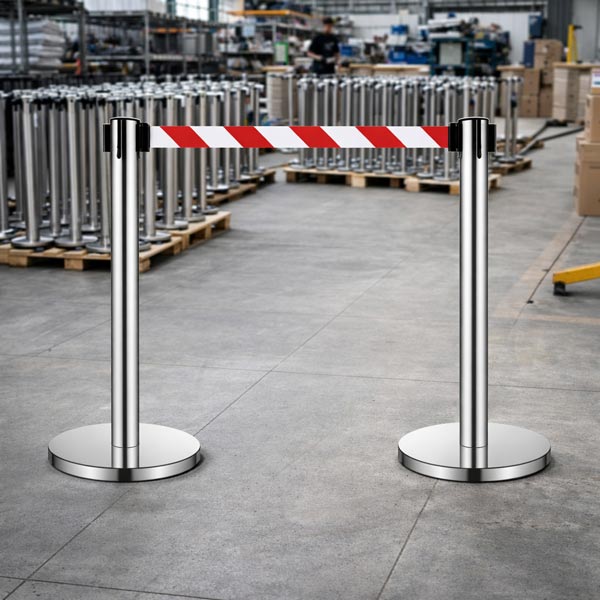 Cột chắn inox dây trắng kẻ đỏ phù hợp sử dụng trong nhiều không gian như sân bay, nhà ga, trung tâm thương mại, ngân hàng, bệnh viện,…